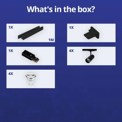 Bright Choice Komplettset 1-Phasen Rail 1 Meter Schwarz | incl. 4x Spot + GU10 2700K 3W Dimmbar + Abschlusskappe, Stromanschluss