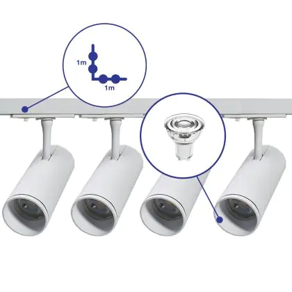 | Herstellername | Complete L shaped 1-Phase Track Set White incl. 4x Spot fixture + GU10 2700K 3W Dim – 1 x 1 meter i | |