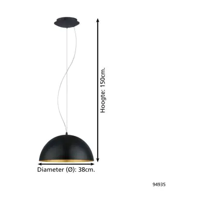 Eglo Pendelleuchte Gaeta 1 Stahl Schwarz Gold | IP20 - Geeignet für 1x E27