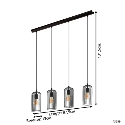 Eglo Pendelleuchte Roccamena 1 Stahl Schwarz | Geeignet für 4x E27