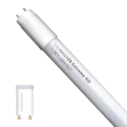 Bei der LED Röhre T8 Extreme (EM/Mains) High Output 16.5W 2650lm - 827 | 150cm - Ersatz Für 58W handelt es sich um eine energieeffiziente LED-Röhre. Sie ersetzt Ihre konventionelle Leuchtstoffröhre mit 58W. Die Röhre ist 1514 mm lang und hat die Farbtemperatur 2700K - Extra Warmweiss. Die durchschnittliche Lebensdauer der LED-Röhre beläuft sich auf 50000 Stunden. Wir bieten Ihnen für dieses Produkt eine Garantie von 5 Jahre an.