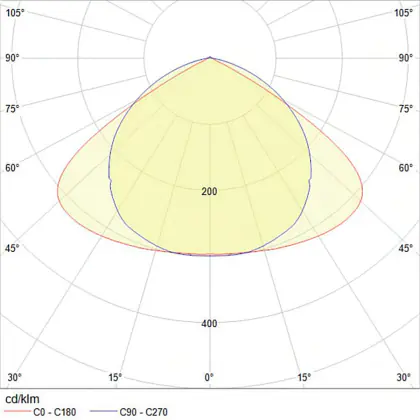 Der Abstrahlwinkel bezeichnet den Winkel, in dem das Licht aus der Lichtquelle ausgestrahlt wird. Er wird in Grad (D) angegeben. Je geringer die Gradzahl des Abstrahlwinkels ist, desto kleiner ist auch der Durchmesser des Lichtkegels, den die Lichtquelle produziert. Beispiel: Wird eine Lampe mit einem Abstrahlwinkel von 60 Grad an der Decke (2,5 m Höhe) angebracht, erzeugt sie einen Lichtkegel von 2,9 Metern Durchmesser. Hat die Lampe hingegen einen Abstrahlwinkel von 120 Grad, beträgt der Lichtkegel 8,7 Meter im Durchmesser. |