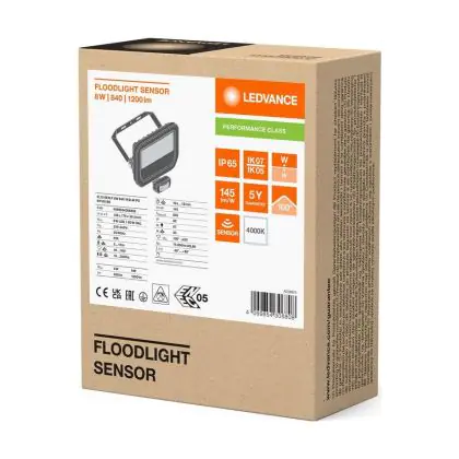 Ledvance Led-Scheinwerfer Aluminium Schwarz 8W 1200lm 100D - 840 | IP65 - Bewegungs- Und Lichtsensor - Symmetrisch