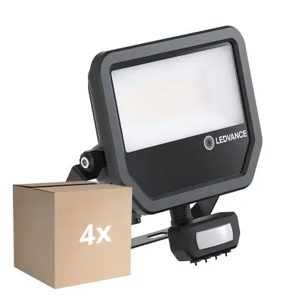 Mehrfachpackung 4x Ledvance Led-Scheinwerfer Aluminium Schwarz 41W 5500lm 100D - 830 Warmweiß | IP65 - Bewegungs- und Lichtsensor - Symmetrisch