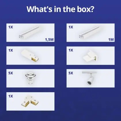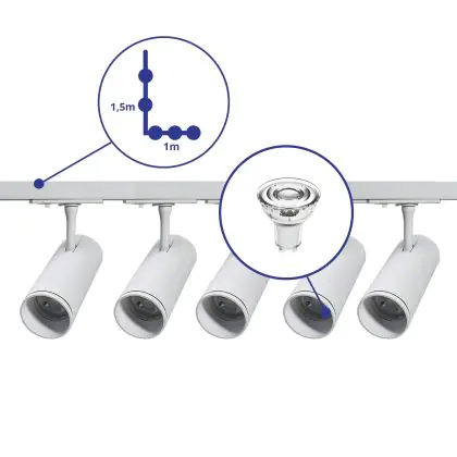 Description Bright Choice Ensemble complet Rail Monophasé Rail L 1 x 1,5 Mètre Blanc | incl. 5x Spot + GU10 2700K 3W Dimmable + Embout, Connecteur d’Alimentation et L -Connecteur