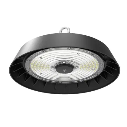 Le Bright Choice Highbay LED ALBIOR Échantillon Noir 150W 25500lm 90D - 757 Blanc Froid | IP65 - avec Détecteur de Mouvement et de Lumière est un puissant luminaire qui est très souvent utilisé pour l’éclairage industriel. Ce luminaire suspendu propage un puissant flux lumineux de 25500 Lm et offrant un excellent rendu de couleurs par rapport aux luminaires traditionnels. Cet high-bay LED est capable de résister aux différentes températures extrêmes que l’on peut retrouver dans les hangars, entrepôts ou autres halls industriels. La technologie LED Intégré sur ce luminaire permet de faire d’importantes économies d’énergie. En effet, l’high-bay propose une puissance de 150W pour un équivalent de 450W pour les appareils classiques et dispose d’une durée de vie pouvant aller jusqu’à 50000 heures.