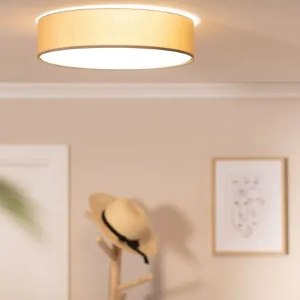 Bright Choice Plafonnier LED Ronde Textile Brun | 500mm - Convient pour 3x E27 – Max 40W