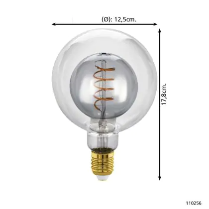 Description Eglo LED Globe E27 Filament Smokey 2W 80lm - 820 | Dimmable - Remplacement 15W