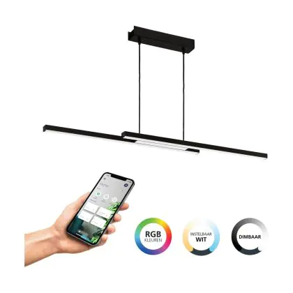 Eglo Suspension Luminaire Fraioli-Z Aluminium Noir 17W 2400lm - 827-865 Accordable Blanc + RGB | IP20 - Zigbee Dimmable