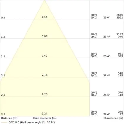 • Angle de diffusion: 55 °