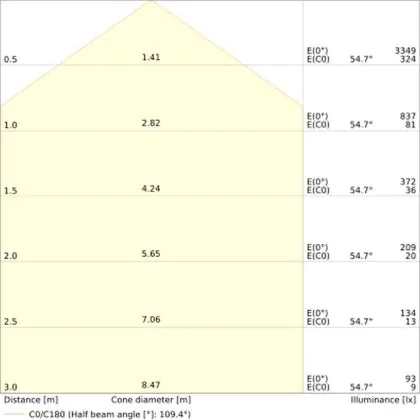 - Angle de diffusion: 110 °