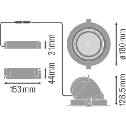 Ledvance Spot LED Vario inclinable 35W 3350lm 24D - 830 Blanc Chaud | Diamètre 170mm est un spot LED encastrable. Ce luminaire est conçu pour un éclairage d’accentuation pour un usage domestique ou bien professionnel. LED Intégré, ce spot LED Ledvance en a besoin d’une place nécessaire de 170mm de largeur et mm de profondeur. Ce luminaire est compatible avec une ampoule GU10, il est important de faire attention si vous décidez de changer d’ampoule.