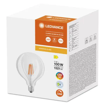 Description Ledvance Superior Classic LED E27 Globe Filament Claire 11W 1521lm - 940 | Meilleur rendu de couleur