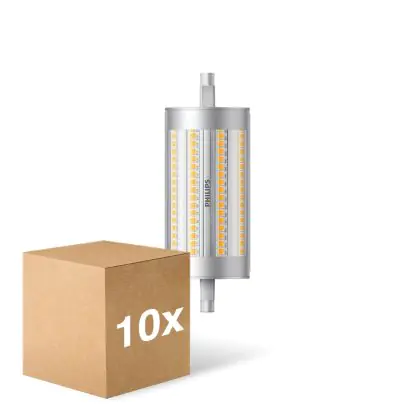 Lot 10x Philips Corepro LED Lineair R7s 118mm 17.5W 2460lm - 840 | Dimmable - Remplacement 150W est une ampoule tubulaire linéaire à double extrémité. Ce type d’ampoule permet de délivrer une lumière homogène à 360° avec comme température de couleur 4000K - Blanc Froid. Cette ampoule LED R7s de chez Philips est la solution idéale pour le remplacement de vos anciennes ampoules halogènes. Cette ampoule LED n’a pas besoin de transformateur, elle fonctionne avec 230V et peut se connecter directement sur le secteur électrique.