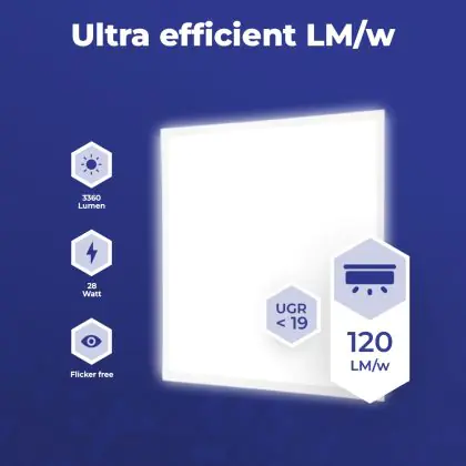 Les panneaux LED sont des solutions éco-énergétiques permettant de remplacer les panneaux classiques équipés de tubes fluorescents. Ce panneau Lot 5x Dalle LED Eco V4.0 28W 3360lm CCT | 600X600 UGR est conçu pour remplacer une dalle classique de 4x18. La consommation de ce panneau LED est considérablement plus faible qu’un panneau classique, à savoir, seulement 28 watts. Une économie d’énergie sans compromettre la qualité de la lumière. Le flux lumineux est de 3360 lumens. La lumière de ce panneau LED est diffusé à degrés et offre un bon rendu des couleurs. La durée de vie moyenne de ce panneau LED est de 70000 heures.