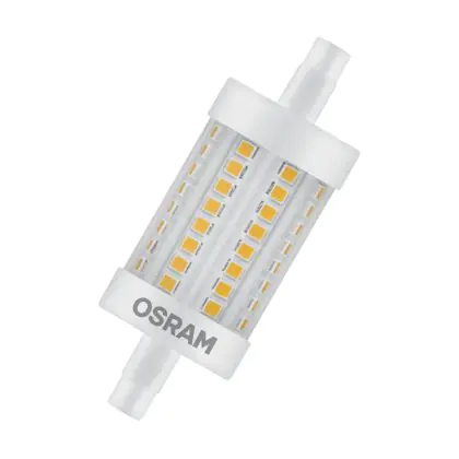 Osram LED R7s 78mm Claire 7.3W 806lm - 827 | Remplacement 60W est une ampoule tubulaire linéaire à double extrémité. Ce type d’ampoule permet de délivrer une lumière homogène à 360° avec comme température de couleur 2700K - Blanc Très Chaud. Cette ampoule LED R7s de chez Osram est la solution idéale pour le remplacement de vos anciennes ampoules halogènes. Cette ampoule LED n’a pas besoin de transformateur, elle fonctionne avec 230V et peut se connecter directement sur le secteur électrique.