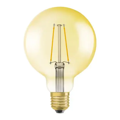 Cette ampoule Osram Vintage 1906 LED E27 Globe Filament Dorée 95mm 4W 420lm - 824 | Dimmable - Remplacement 40W est l’alternative idéale pour la remplacement de votre ampoule classique de 40 W. La technologie LED intégrée vous offrira de nombreux avantages. Les ampoules à incandescence traditionnelles ont une durée de vie limitée. Cette alternative LED vous permettra de profiter d’un éclairage durable et fiable.