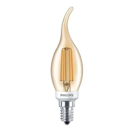 Description Philips Classic LED Bougie E14 Flamme Filament Dorée 5W 410lm - 825 | Dimmable - Remplacement 40W