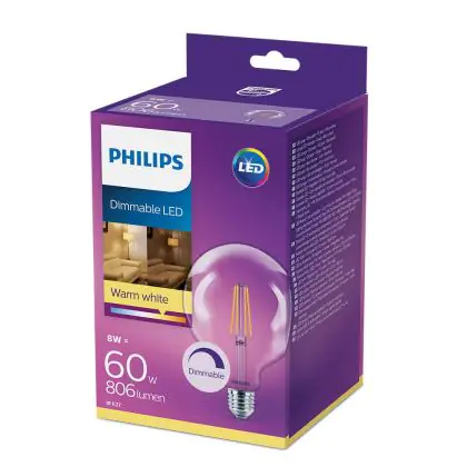 Cette ampoule Philips Classic LED Globe E27 Filament Claire 120mm 8W 806lm - 827 Blanc Très Chaud | Dimmable - Équivalent 60W est l’alternative idéale pour la remplacement de votre ampoule classique de 60 W. La technologie LED intégrée vous offrira de nombreux avantages. Les ampoules à incandescence traditionnelles ont une durée de vie limitée. Cette alternative LED vous permettra de profiter d’un éclairage durable et fiable.